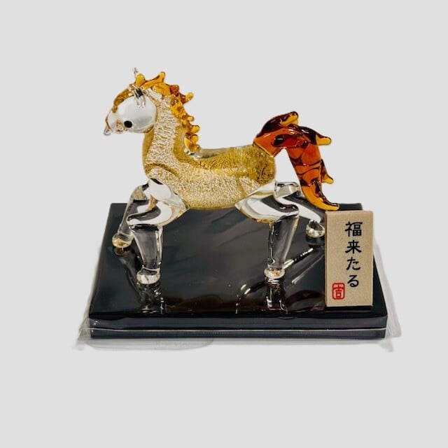 干支をモチーフにした「午の置物」は、ガラスに金箔をあしらい、丁寧に作られた縁起物です。